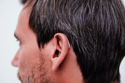 後ろからだと本体が見えますが、横からはほとんど装用がわかりません。また、髪の毛が長い方は隠れてしまうので男女問わずおすすめの補聴器です。
