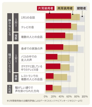 ドイツでは、約4分の3が両耳で補聴器を装用しています。世界的に見ると、両耳装用が一般的ということなのですね。諸外国では、両耳装用の効果を深く認識されているのです。