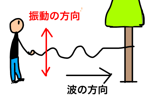 そしてこの時、ロープの揺れ(振動)は波と垂直になっているのです。
