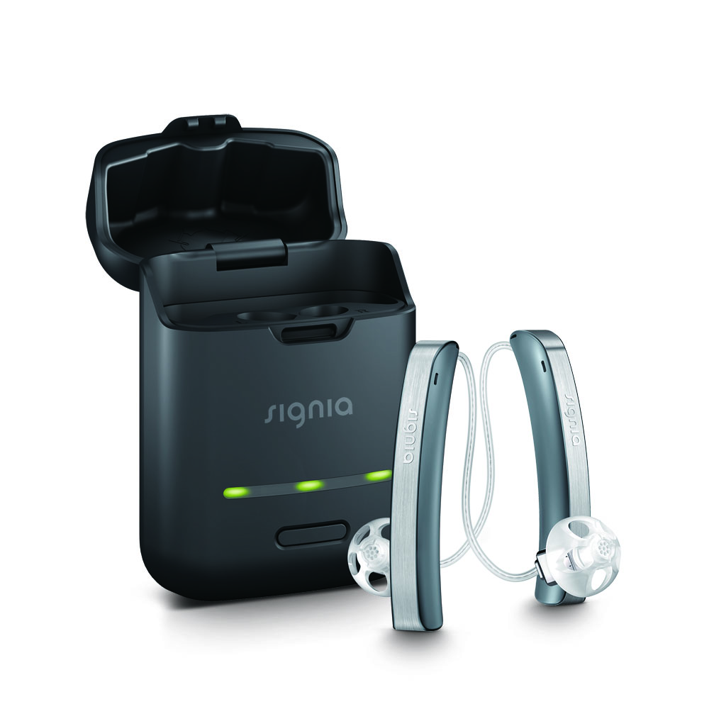 スタイレットは、一見では補聴器と判断できないほど、洗練されたデザインが特徴。充電式にすることで、電池のスペースを削減し、本体の小型化を実現しました。スリムでおしゃれなスタイレットは、ファッション感覚で身に着けることができます。